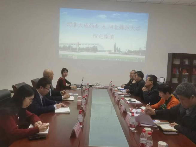 3月13日下午,河北师范大学领导在市人社局崔满城主任陪同下莅临河北天成药业座谈寻求合作。在充分介绍公司引才用才措施和培训、晋升机制的基础上,公司常务副经理王颢表示希望能够通过本次会议,在校企之间建立合作桥梁,增进双方了解,在毕业生就业创业、实习实训、人才培养等方面寻求深度合作。