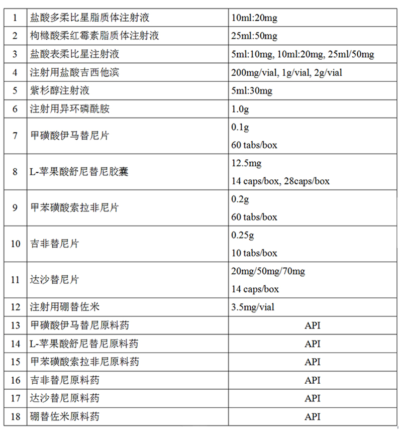 适应症:治疗恶性淋巴瘤、乳腺癌、肺癌、软组织肉瘤、食道癌、胃癌、肝癌、胰腺癌、黑色素瘤、结肠直肠癌、卵巢癌、多发性骨髓瘤、白血病。